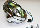 Custom Ready to Assemble Chrome Side Mount Headlight Bucket Rim & Retainer. Designed for 7" sealed or non sealed H4 type headlights.
