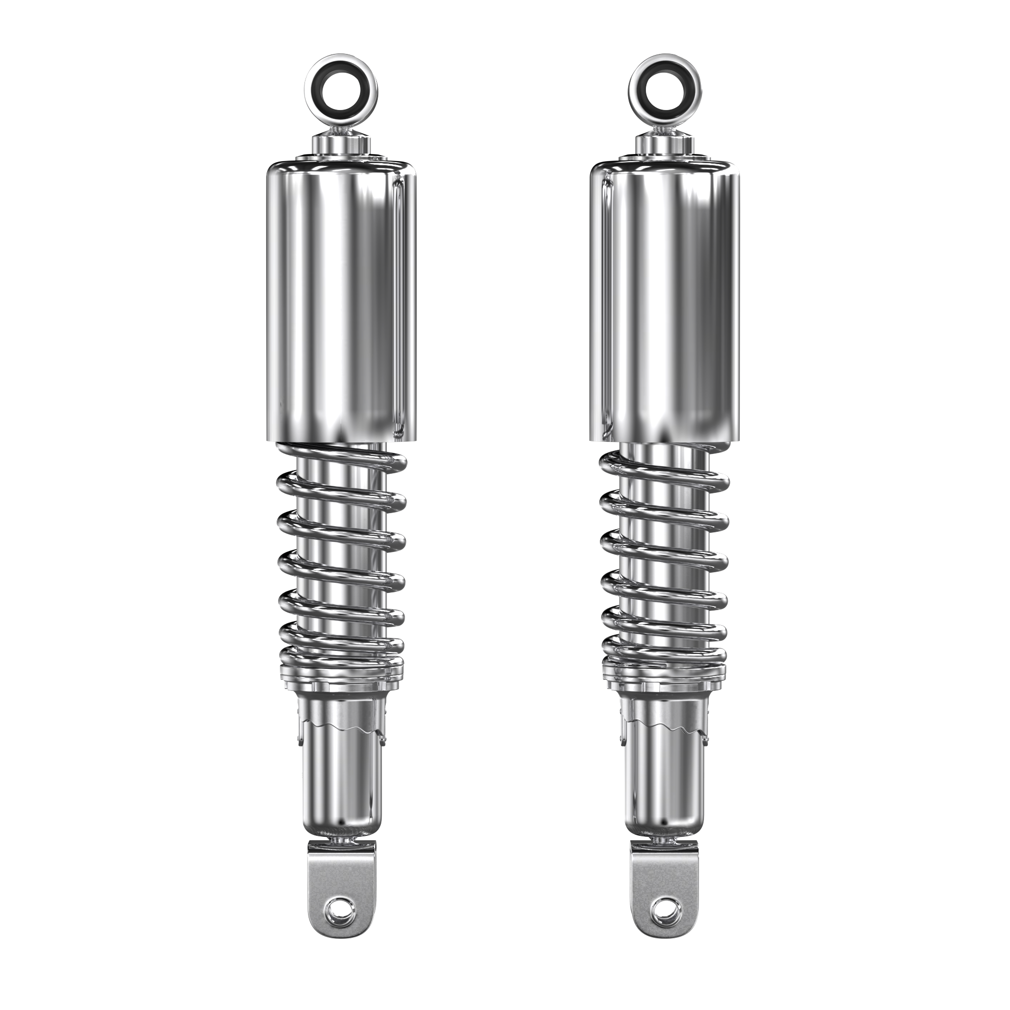 Stock Type Designed Shock Absorber Set - Chrome Body with Chrome Springs and Chrome Center. These are modelled after the original stock shocks made for the CB750K 1972-76.